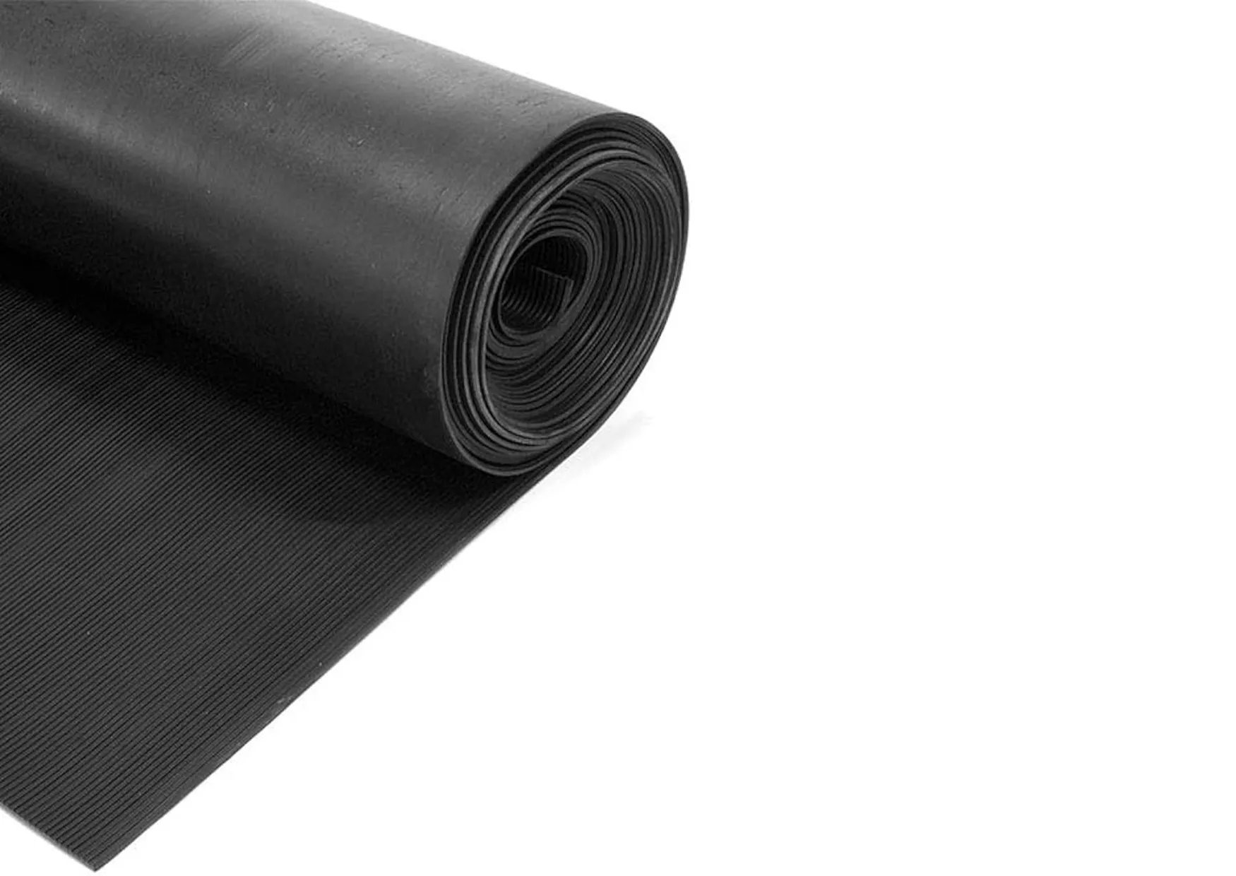 Pavimento in gomma SBR a superficie rigata a coste strette e rovescio impronta tela.